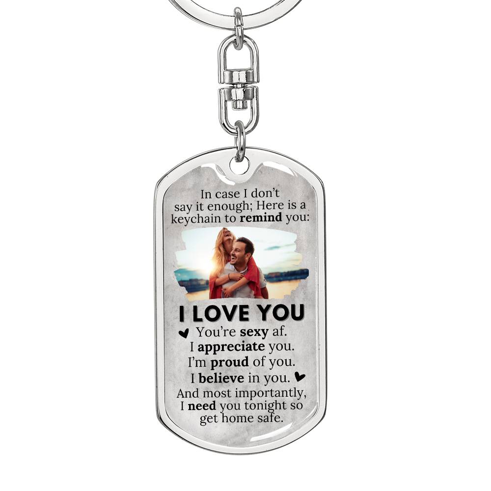 In case I don't say it enough, Here is a keychain to remind you: I LOVE YOU. You're sexy af. I appreciate you. I'm proud of you. I believe in you. And most importantly, I need you tonight so get home safe.